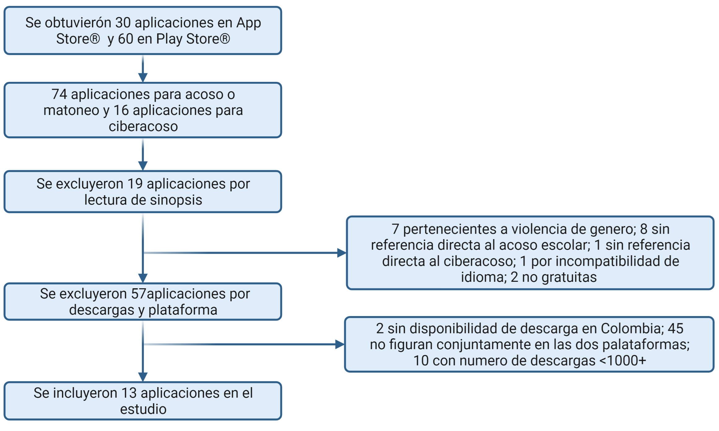 En conclusión, en Colombia están disponibles para descarga gratuita aplicaciones móviles educativas, asistenciales y de reporte de casos de acoso escolar y ciberacoso, cuya utilidad está apoyada por estudios realizados en otros países. Por lo tanto, podrían constituirse como estrategias potencialmente aplicables en instituciones educativas de nuestro país. Sin embargo, las más populares entre los usuarios a nivel mundial son los juegos que promueven estas conductas y podrían llegar a incentivar comportamientos violentos en los menores. Estas deben ser reguladas por los cuidadores conforme a la ley colombiana para que no contribuyan a aumentar este problema de salud pública.